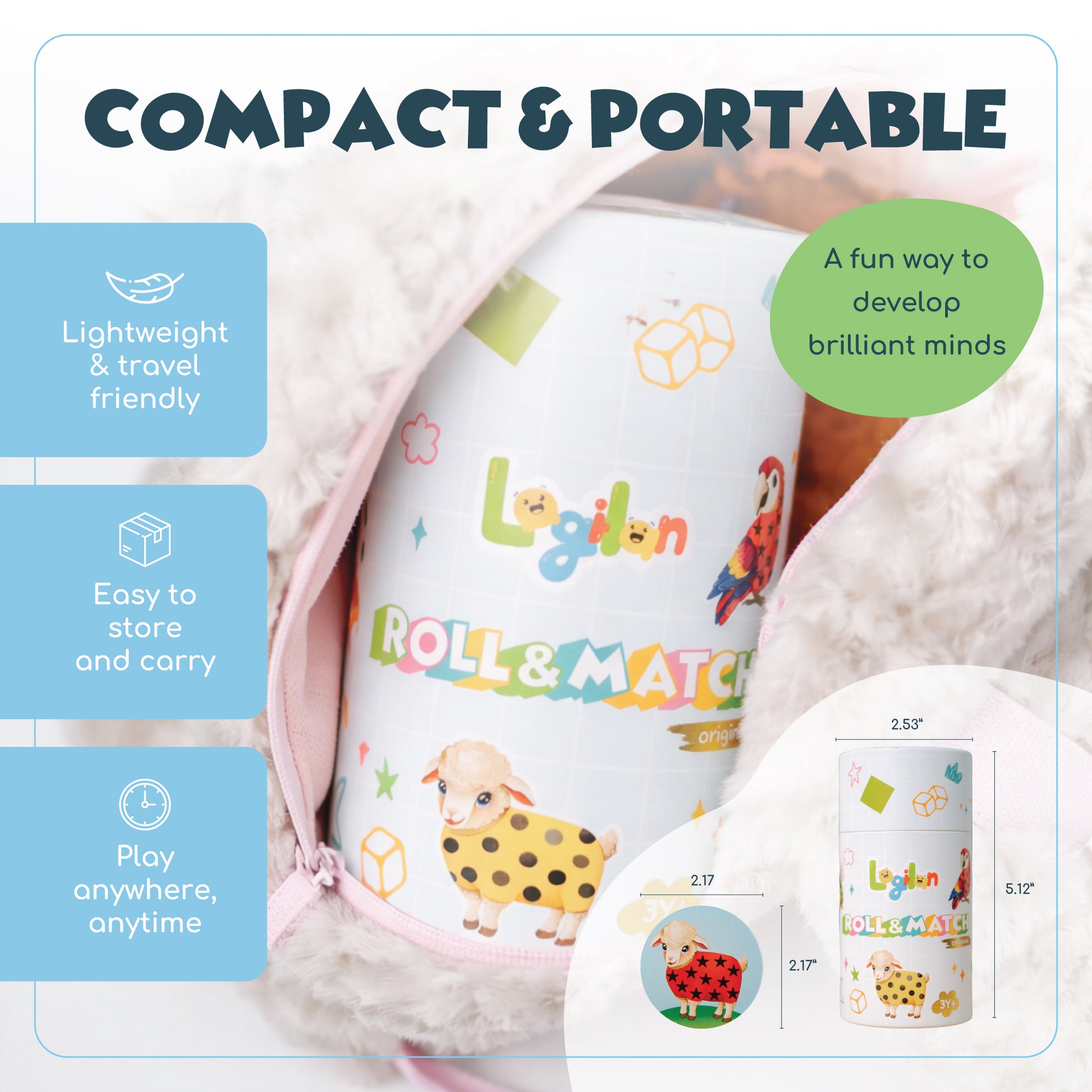 Use all 3 dice (animal + color + shape) to find the exact match.